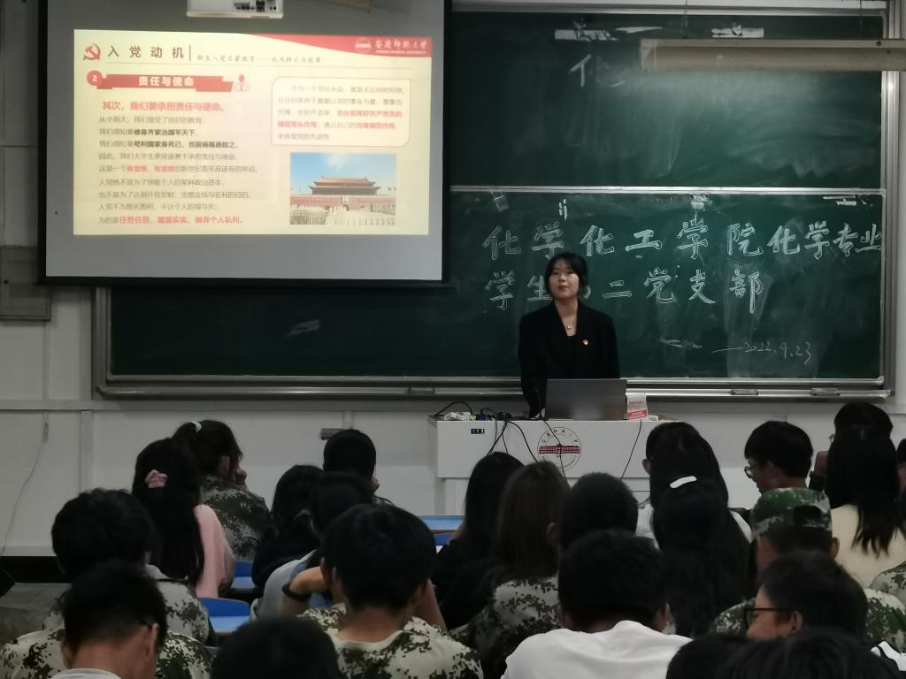 本次活动内容主要由“我为什么要入党、共产党员是一群什么样的人、怎样加入党组织”三部分组成。学生党员结合自身学习生活经历,讲述了学院师生在参加“我为群众办实事”系列党日活动等方面的积极贡献,引导同学们端正入党动机,激励同学们以实际行动早日加入中国共产党。学生党员以模范党员的典型事迹详细介绍了“共产党员是一群什么样的人”,向新生们展示了优秀共产党员坚定的理想信念和崇高的共产主义信仰。学生党员还从自身入党经历入手介绍了党员发展流程,指导新生撰写入党申请书,为正确迈出成为一名共产党员的第一步做好准备。