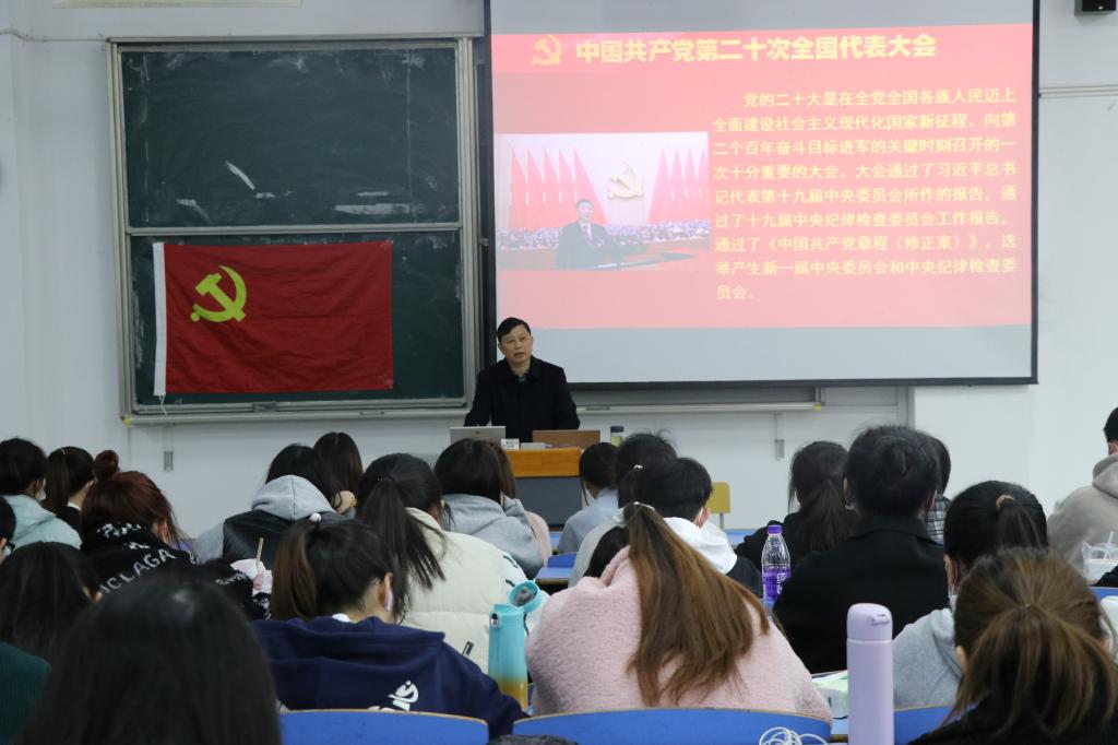党委书记李新建作题为《深入学习贯彻党的二十大精神,立志做有理想敢担当能吃苦肯奋斗的青年模范》的宣讲报告。学院第66期入党积极分子培训班学员和学生骨干参加了报告会。