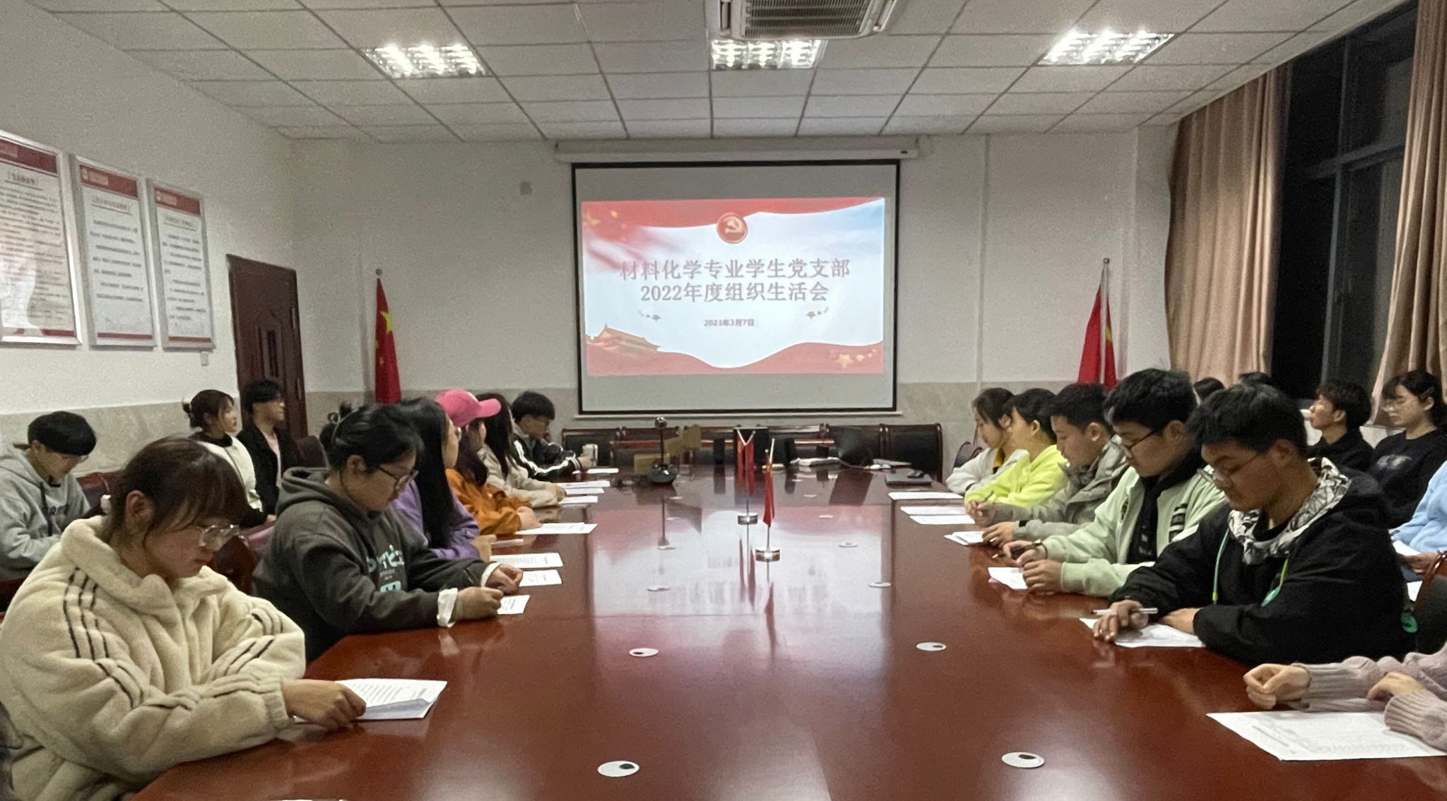 材料化学专业学生党支部在化学楼304召开2022年度组织生活会并开展民主评议党员,学院党委副书记鲍青燕列席参会指导。