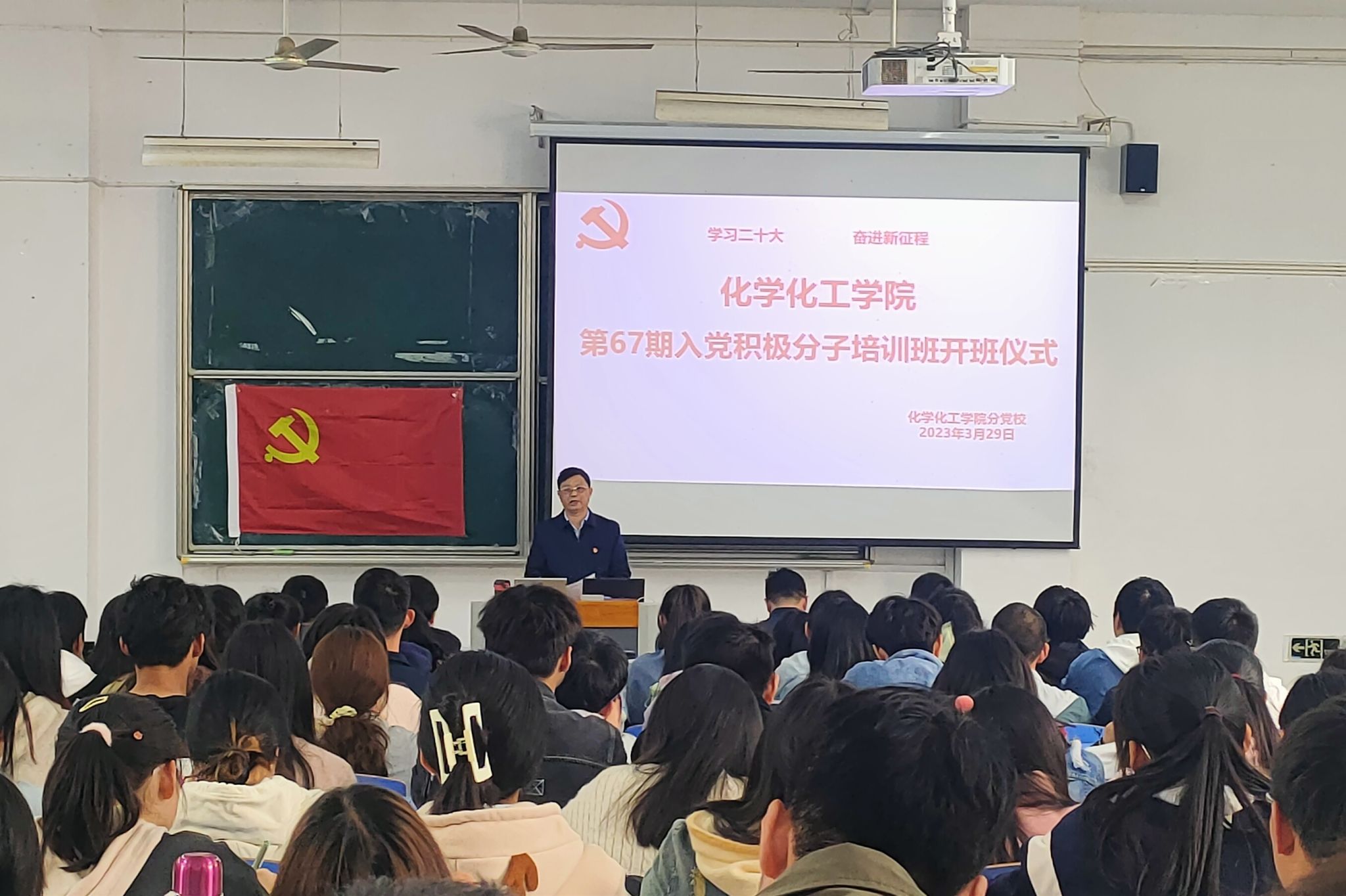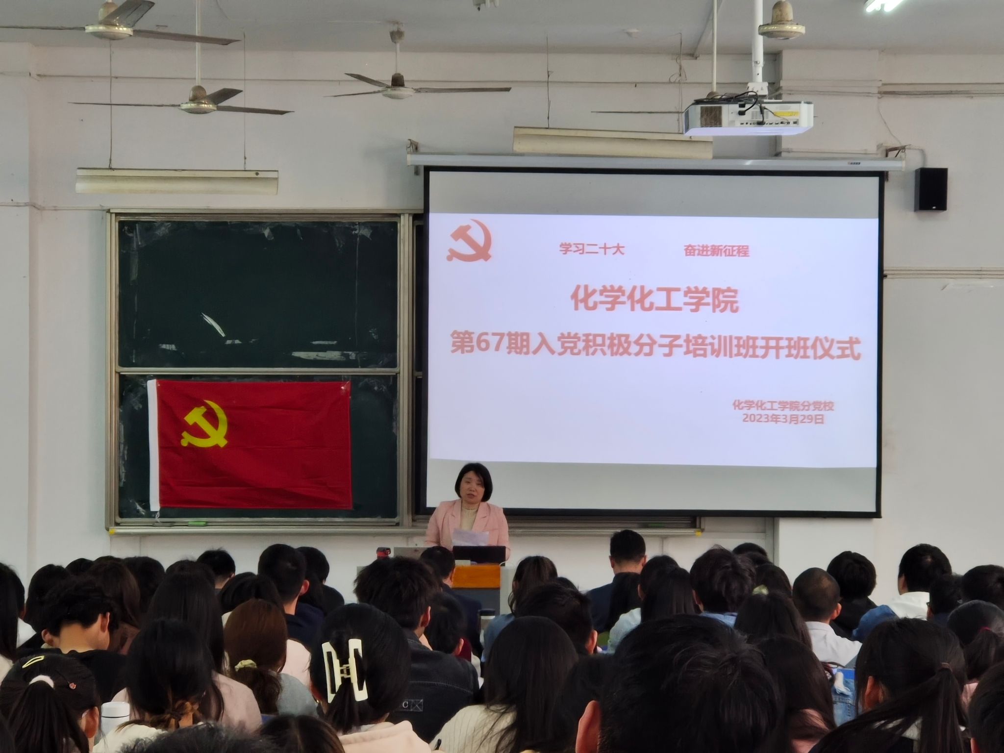 举行第67期入党积极分子培训班开班仪式。学院党委书记李新建、培训班班主任及各学生党支部书记出席此次开班仪式。会议由党委副书记鲍青燕主持。