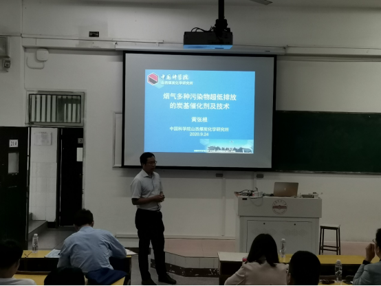 广大师生分别作了题为《烟气多种污染物超低排放的炭基催化剂及技术》和《烟气多种污染物超低排放的炭基催化剂及技术》的学术报告,报告由化工新材料产业学院常务副院长官叶斌教授主持。