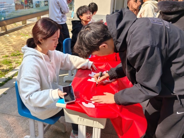 在认真聆听科普宣讲后,同学们纷纷在“三月春‘锋’暖,热血映初心”横幅上郑重签名,坚定投身公益的决心。化学工程与工艺专业2024级李亚辉表示:“作为一名大学生,能够通过献血为社会贡献一份力量,我感到无比自豪。这不仅是一次公益活动,更是一次对自我价值的深刻认识。”活动负责人、材料化学专业2022级(2)班陈浩东表示:“学院将以此次活动为契机,引导更多青年投身公益实践,为社会注入更多温暖与正能量。”