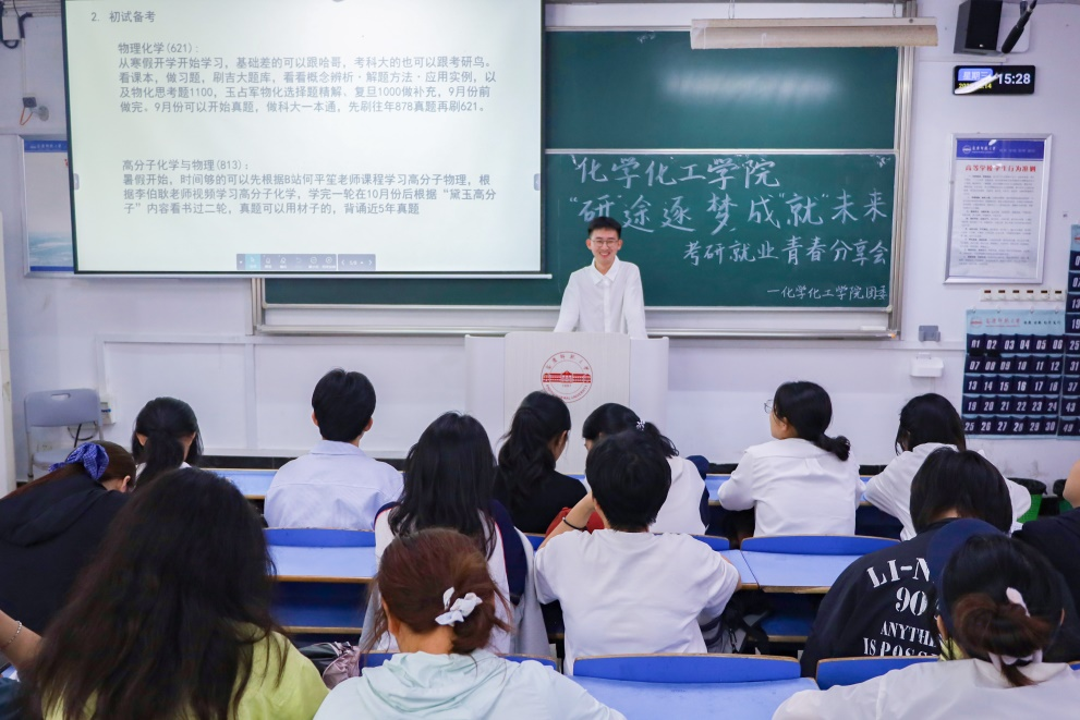 “举办本次活动的目的在于帮助学生们应对日益增大的考研与就业压力,解决他们在择校、备考、就业方向选择、求职经验积累等方面的困惑。”活动负责人、化学(师范)专业 2022(1)班张启明表示。