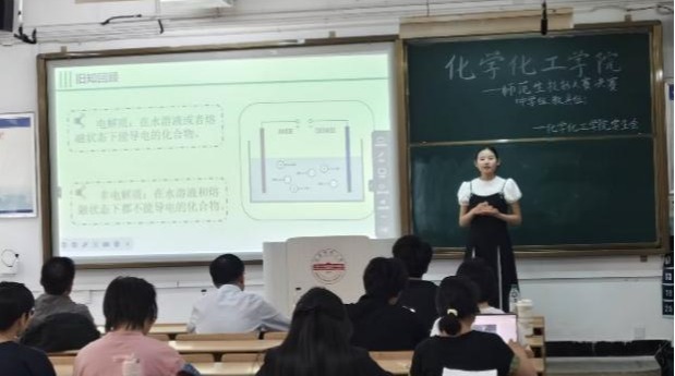 顺利举办师范生教学技能大赛。比赛分初赛、决赛两个环节,100余名同学参加。经初赛选拔,中学组10人、教具组8人、“三字一话”组27人进入决赛。决赛现场,选手们以匠心打磨三尺讲台,向评委老师展现出专业的化学学科素养和扎实的教学基本功。经过激烈角逐,卞雨雪、赵雷等19名优秀选手脱颖而出,将代表学院参加学校师范生技能大赛。