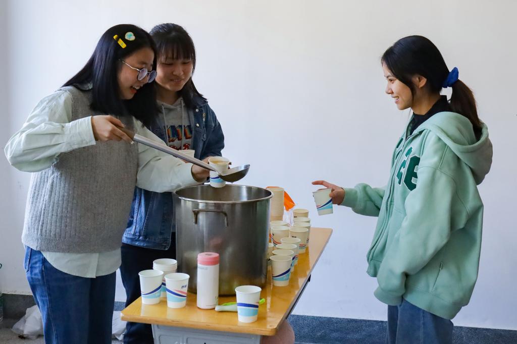 组织学生为该院考研学子自制秋日饮品、清扫教室、排查安全隐患,暖心助力考研。