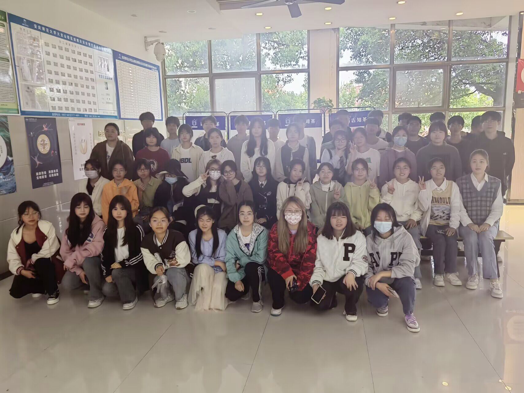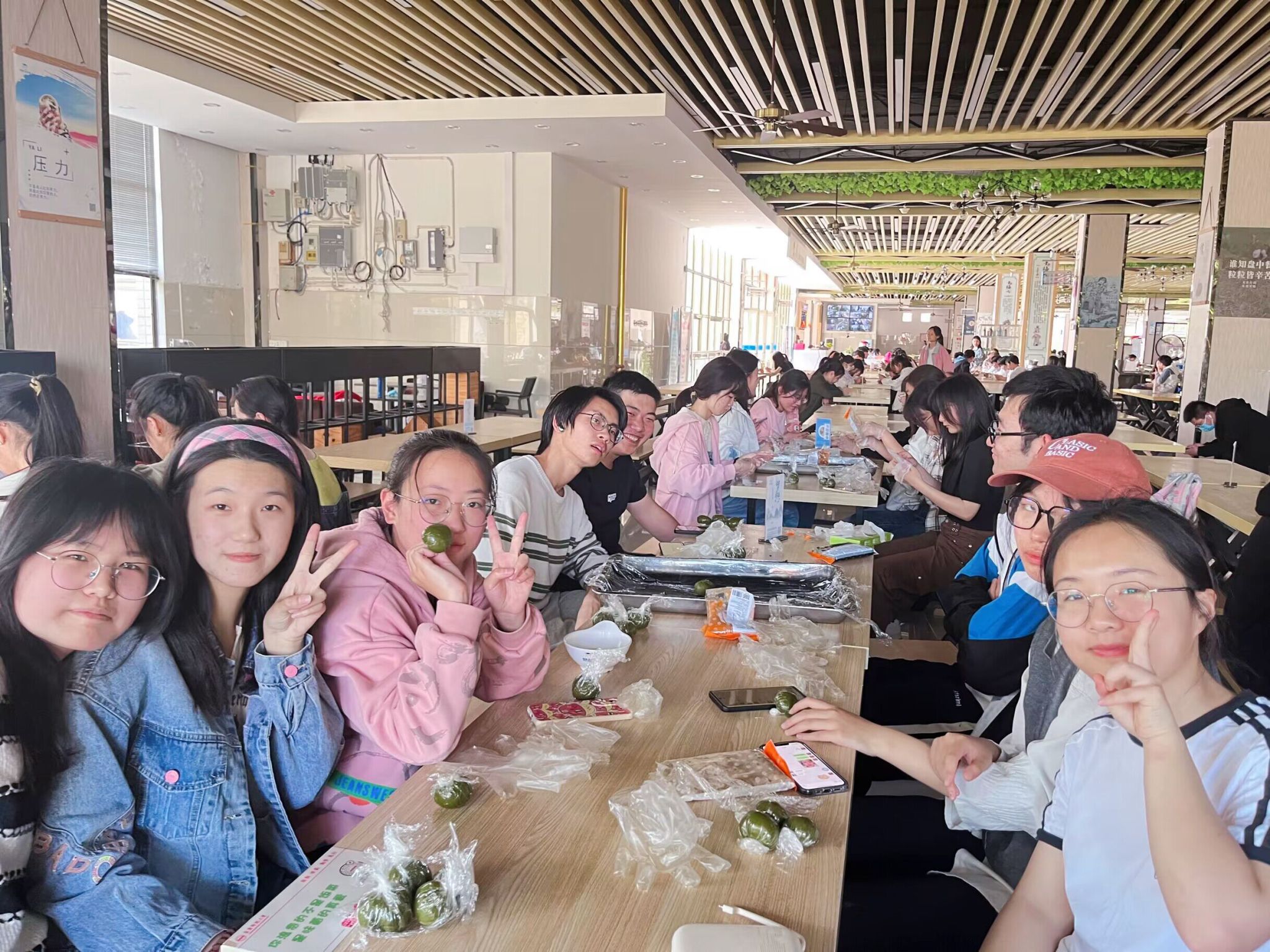 活动结束后,同学们合影留念。为减少食堂工作人员的负担,同学们带走了自己做的青团以及身边的垃圾,看到此情景的几位食堂阿姨纷纷对同学们伸出了大拇指。
