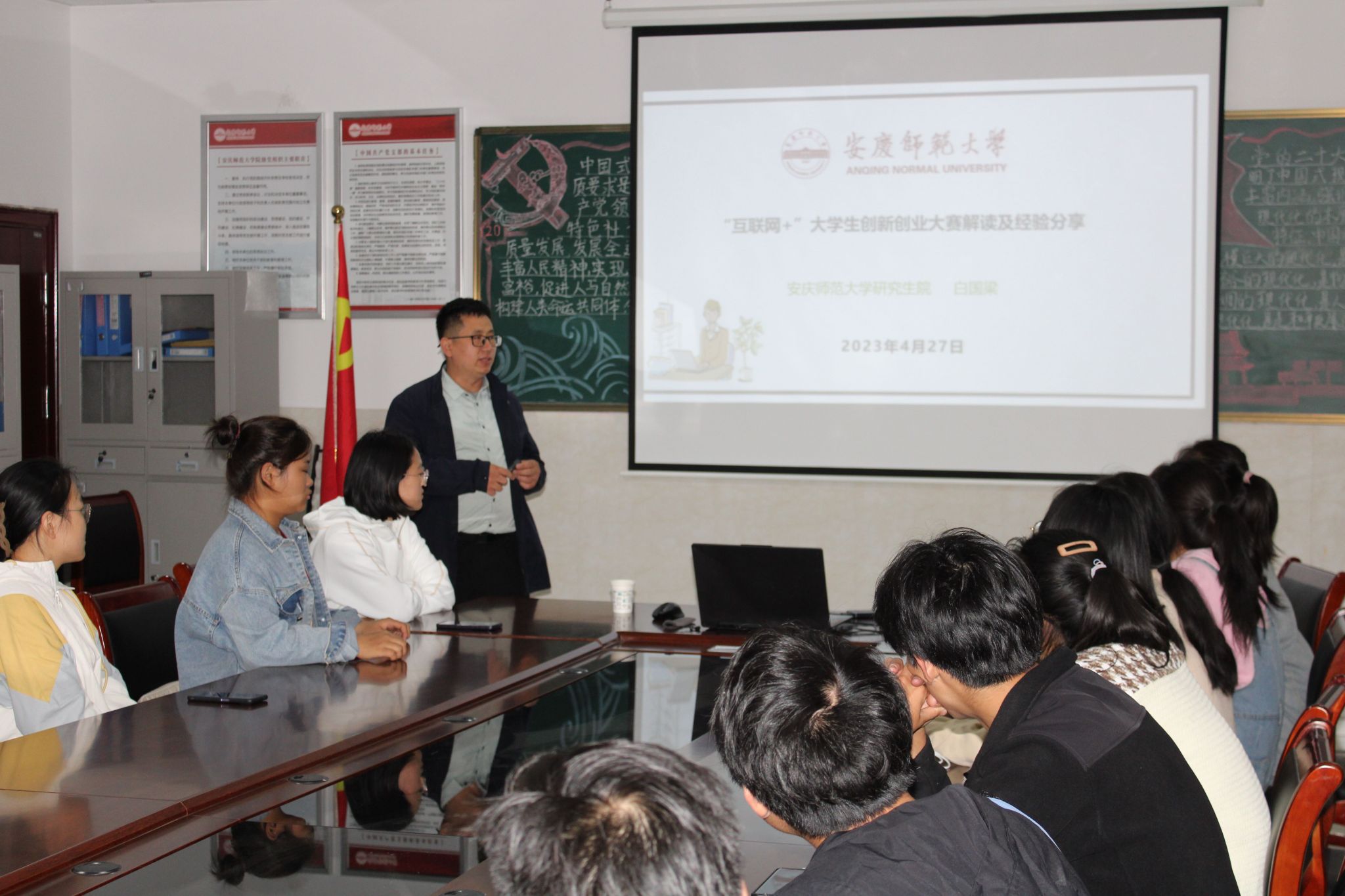 举办“互联网+”大学生创新创业大赛培训会,邀请学校创新创业教研室主任白国梁博士为参赛同学做赛事解读与指导,70余名团队代表参加。