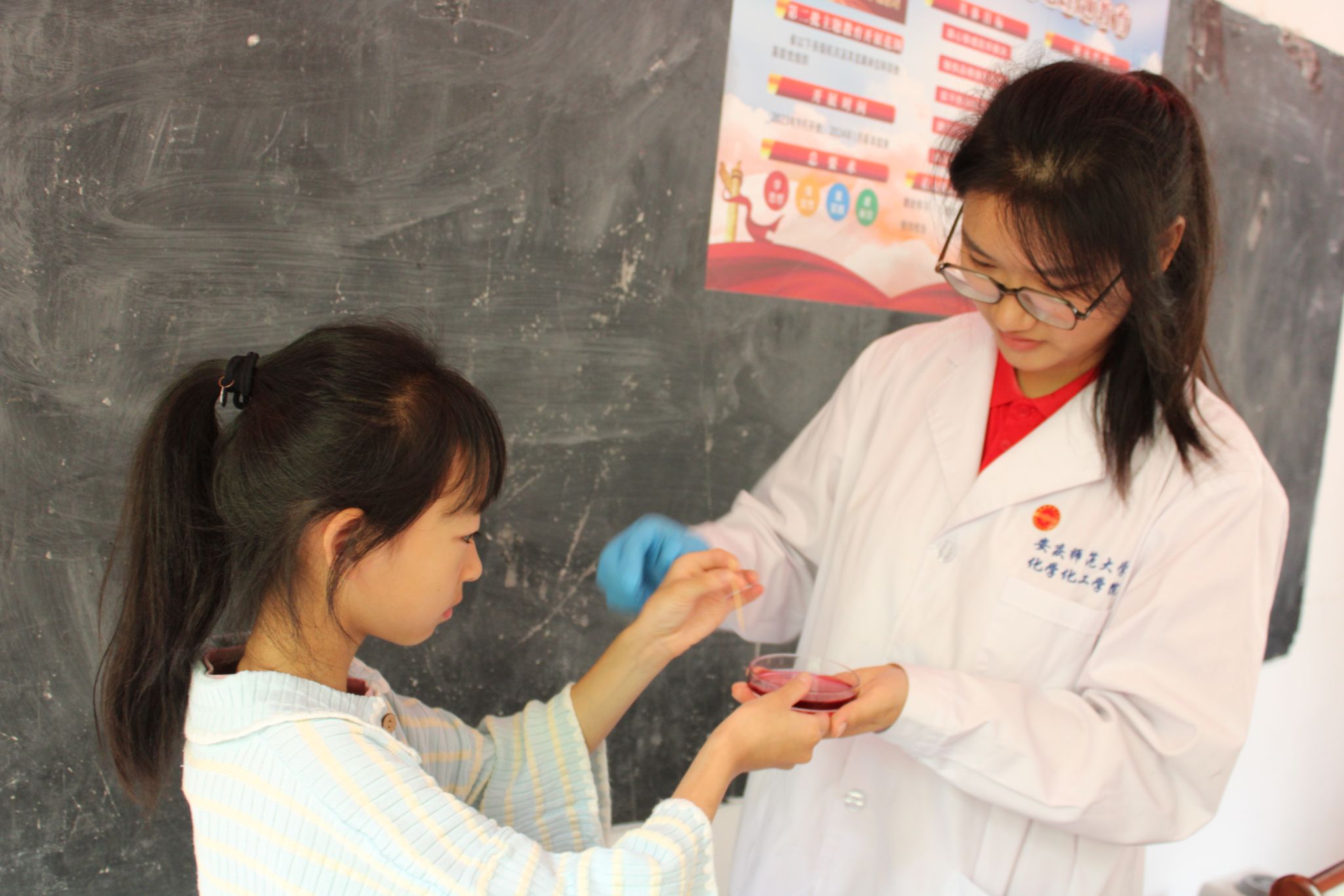 趣味化学科普公益实践团在西冲村开启了第一次暑期三下乡实践活动。七年后,在当时的团队指导老师白国梁的带领下,8名师生接过科普的接力棒,为当地的孩子们带来了更加丰富、有趣的化学实验。