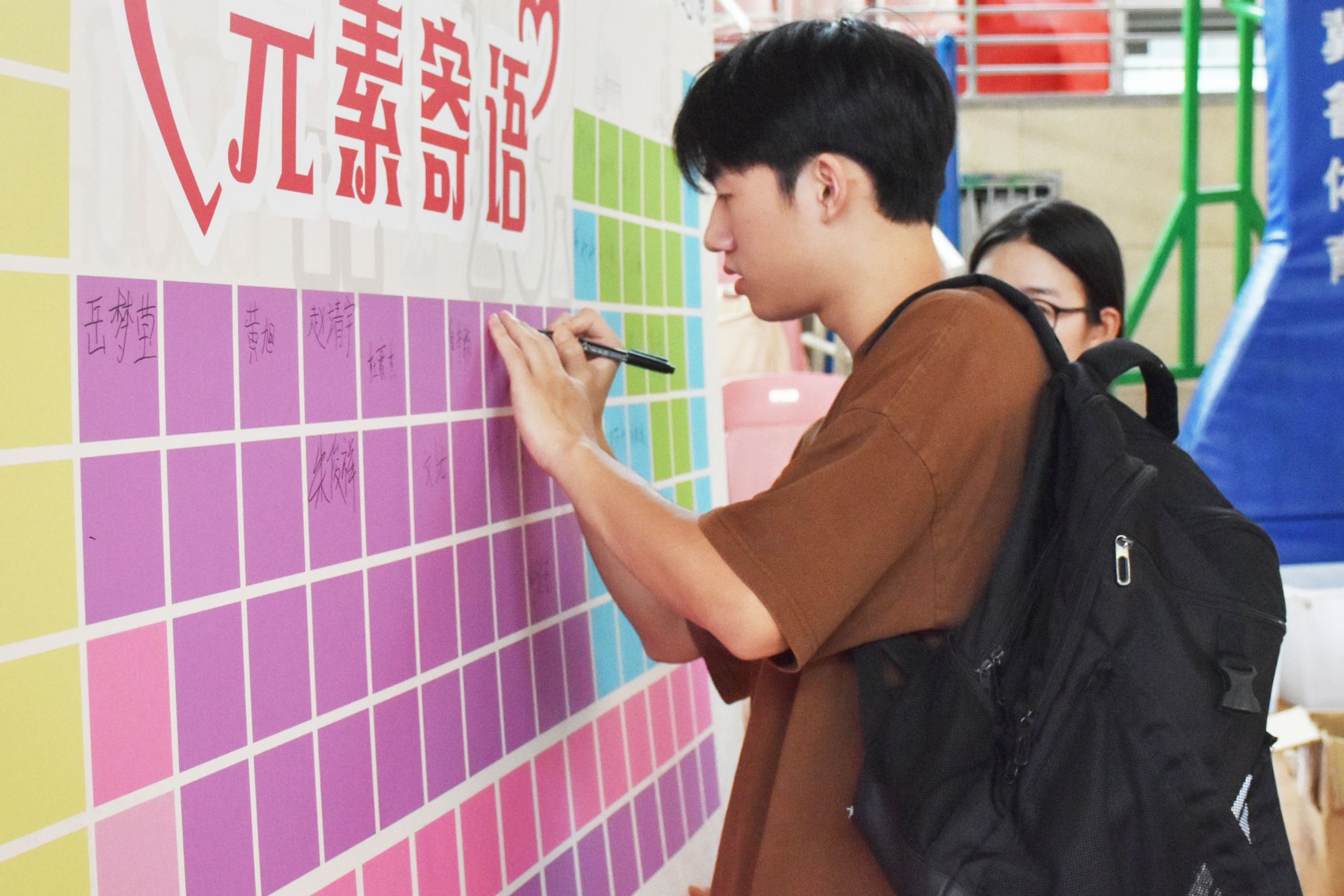 “哇,这是签名板吗?好有创意!”步入体育馆时,化学专业2024级新生杨欣怡被一面元素周期表的签名板深深吸引。报到现场,学院特别设置了“元素寄语板”,邀请每位新生在自己喜欢的元素空格内留下姓名和心愿。这一创意不仅让新生们感到新奇有趣,也让他们在开始大学生活之际,就与化学元素建立了独特的联系。此外,学院还发挥专业优势,将学生自制驱蚁液作为迎新礼物赠予新生,充分彰显了学科专业特色。化学专业2022级5班杨芳雨表示:“将化学元素融入迎新活动,让冰冷的化学符号瞬间充满了温度,也让新生们对学科专业有了更深的了解和期待。”