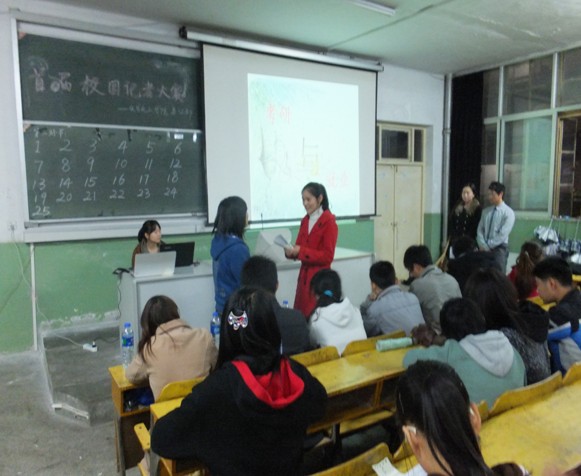 团总支学生会通讯部精心准备已久的“首届校园记者大赛”在化学楼理二阶拉开了帷幕。并有幸邀请到团总支组织委员孟尚君、团总支宣传委员李照辉以及宣传部、后勤部、网络技术部、外联部四个部门部长担任评委,参赛对象为11级、12级全体在校学生。由通讯部成员负责计时、统分、拍照、后勤等各项工作 ,现场秩序井然,座无虚席。