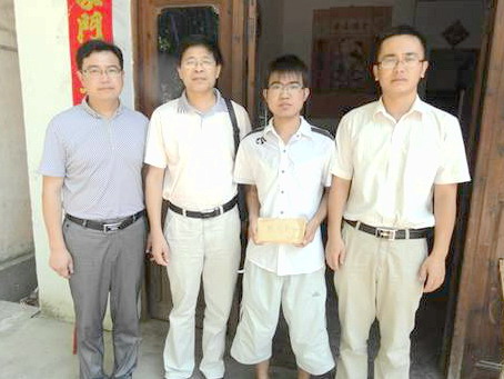 党总支书记夏宏宇、党政办公室主任何承东、团总支负责人汪磊、学生资助专管老师程文一行四人来到望江县华阳镇白沙村对09级工艺专业学生祖运进行了回访。