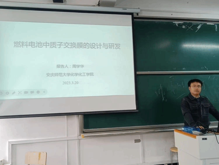 周学华博士在龙山校区C302教室作了题为“燃料电池中质子交换膜的设计与研发”的学术报告。学院材料化学专业90多位同学参加了此次报告会。