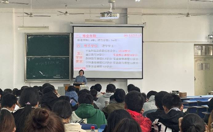 “听完这次报告会后,我对于我们专业需要学什么、未来要做什么都有了清晰的认识,也初步确定了未来的职业发展方向。”材料化学专业2021级2班的张云凤为了深入了解目前所学的专业,她特意选择坐在教室前排。前期学院已通过开设专业导论课、开展入学典礼和新老生交流会等方式让新生了解所学专业的学业要求、课程结构和发展方向。后期学院将通过组织新生参观实验室等方式让大家更进一步深入了解各专业,爱上各专业。