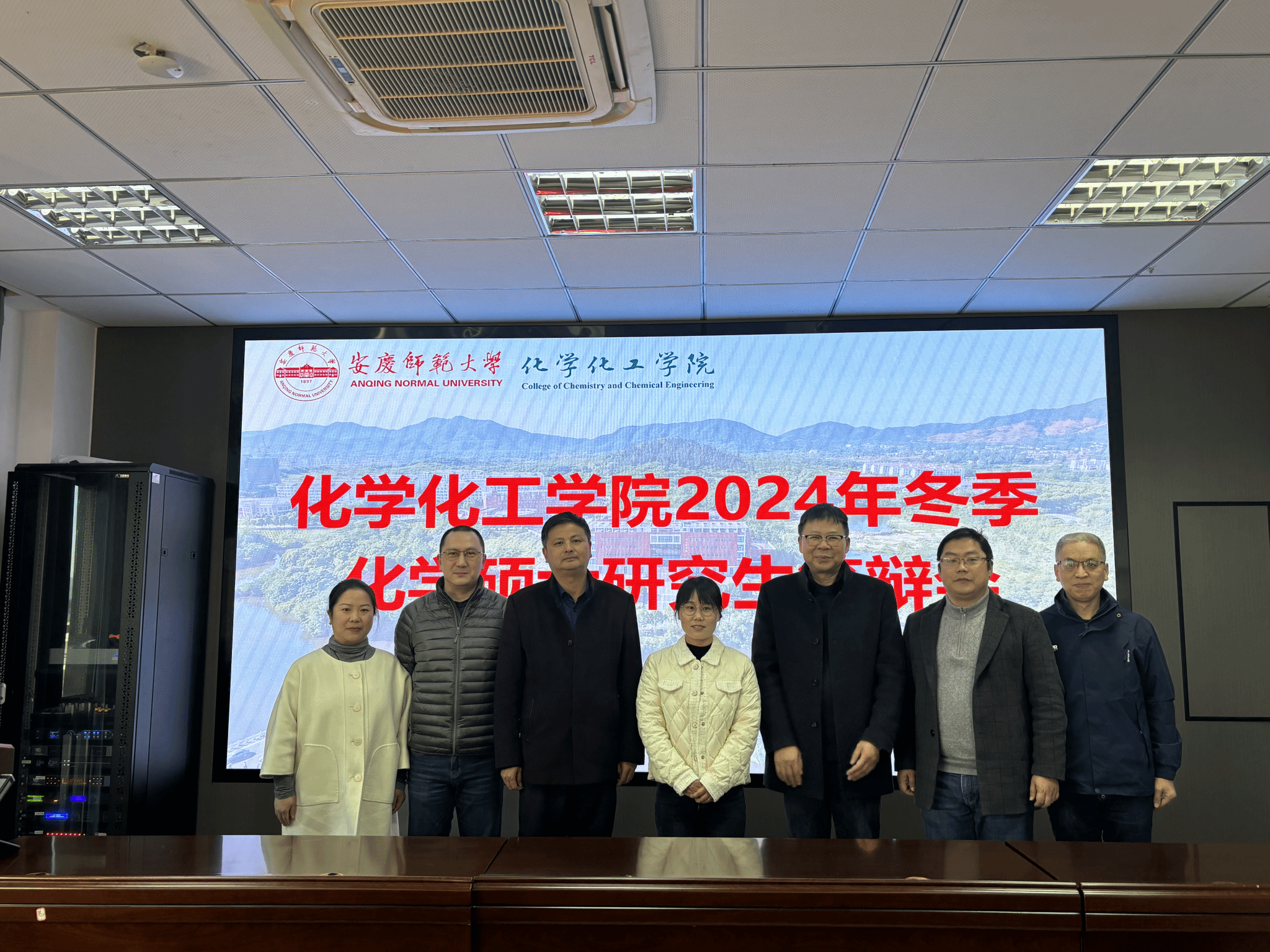在龙山校区H楼401会议室举行2024届硕士研究生冬季学位论文答辩会。安徽师范大学周双六教授担任答辩委员会主席,皖西学院谢成根教授、池州学院吴国志教授,水果派解说