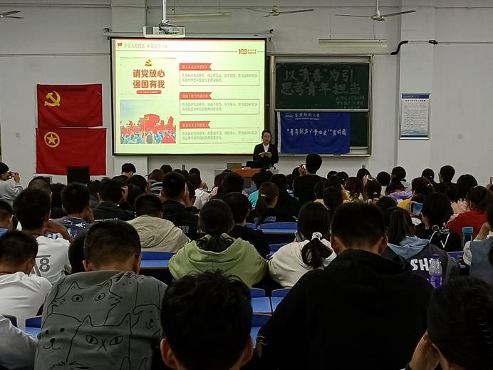 团委举办“学党史·强信念·跟党走”党史主题宣讲会,此次活动邀请马克思主义学院“青年新声”党史宣讲团作主题为《以“青春”为引,思考青年担当》的报告,200余名2021级新生和学生党员代表参与其中。