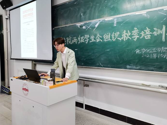 培训会上, 2020级化学3班凤学文带领参会同学共同学习了习近平总书记“七一”重要讲话精神,帮助学生骨干统一思想,提高政治素养。随后全体成员共同认真研读了《关于学联学生会工作人员改进作风服务同学的若干规定》,进一步明确了学生会设立的根本目的在于帮助学生解决校园生活中的问题,加强学校与学生之间的沟通。学生会成员加入学生会的初衷应该是服务同学、锻炼自己,所有学生会成员都应以身作则,提高责任与担当意识,做好师生之间沟通的桥梁和纽带,为学院发展贡献自己的青春力量!