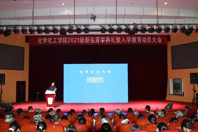 “大学和中学是不一样的,同学们要确立适合自己的目标,养成良好的学习生活习惯,注重能力的提升。大学的时光总是美好而快乐的,希望化学化工院的学子能够把自己的爱好变成自己的优势,做一个对社会有用的人。”北京科技大学化学研究所教授、所长,教育部创新团队负责人,国家重点研发项目首席科学家,国家自然科学基金委重大项目负责人,化学专业1988届毕业生邢献然教授作为优秀校友代表为新生寄语,分享了自己在校学习生活的经历和体会,为新生学子们讲述了生动一课,赢得阵阵掌声。