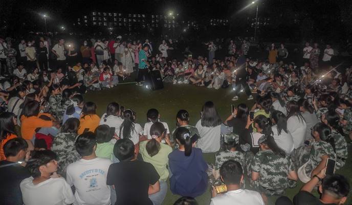 学生分班级在东门操场进行了活动前的“月下畅谈”。纷纷介绍了自己的家乡、大学的生活,也谈及了自己的茫然和困惑,并表达了自己对家乡、家人的思念。
