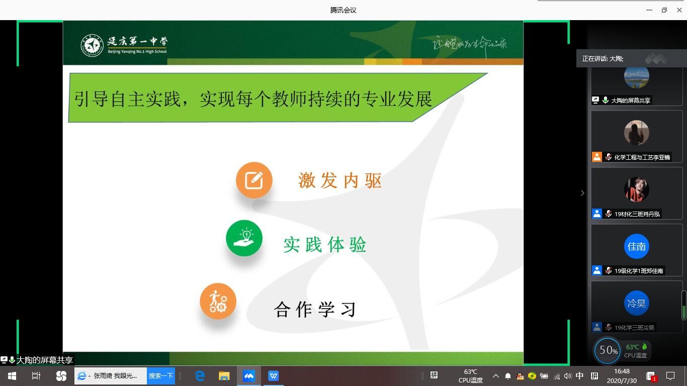 师范专业学生教师技能的提升、促进师范生全面发展,7月30日下午,中国教育学会理事,北京延庆一中校长陶汪来老师以化学专业95届校友的身份应邀作题为《影响教师专业化发展的因素与策略》的教师职业发展专题报告。学院化学专业全体师生参加了此次报告会。