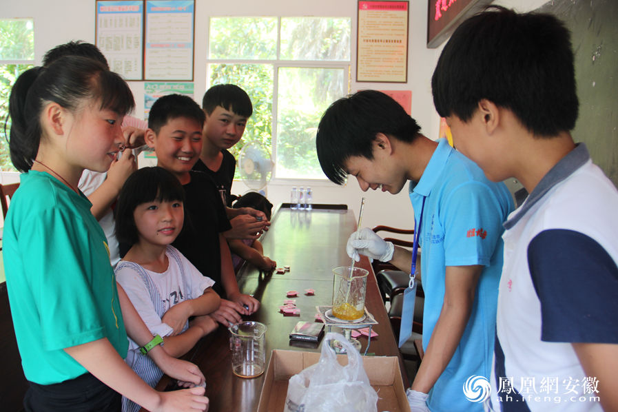 在“科技扶贫,教育先行”扶贫模式中走进偏远山区太湖西冲开展的微科研探究活动内容之一。在保证安全有序的前提下,激发孩子们对化学的兴趣,普及生活中的化学知识。