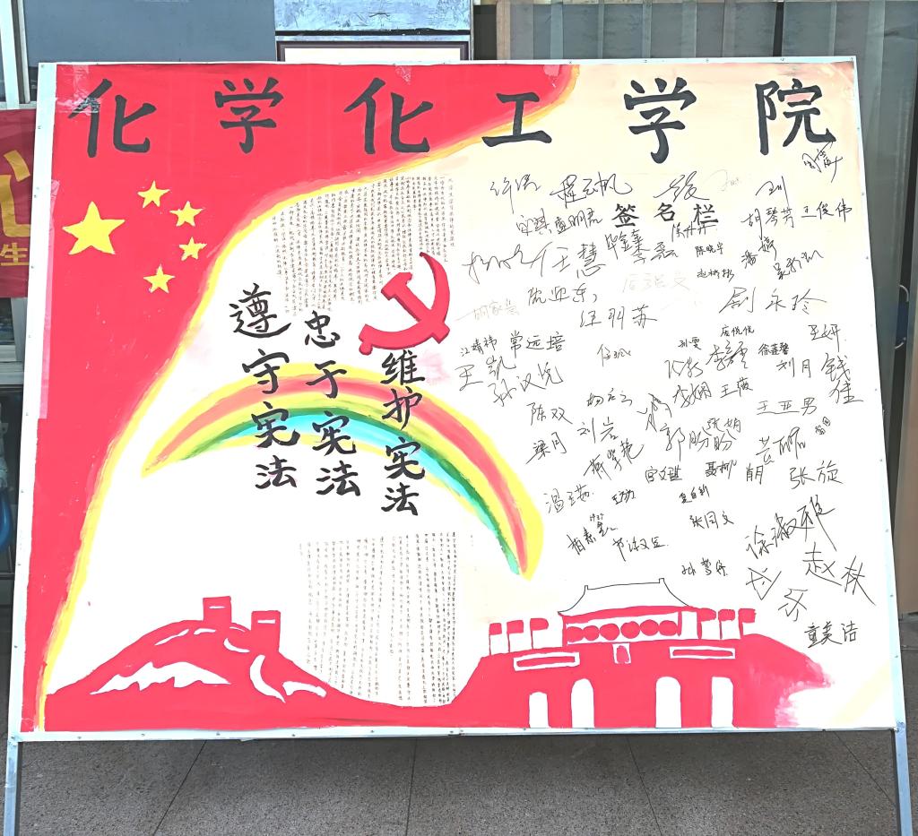 团总支学生会宣传部在润博食堂门口举办学习宪法的签字活动。