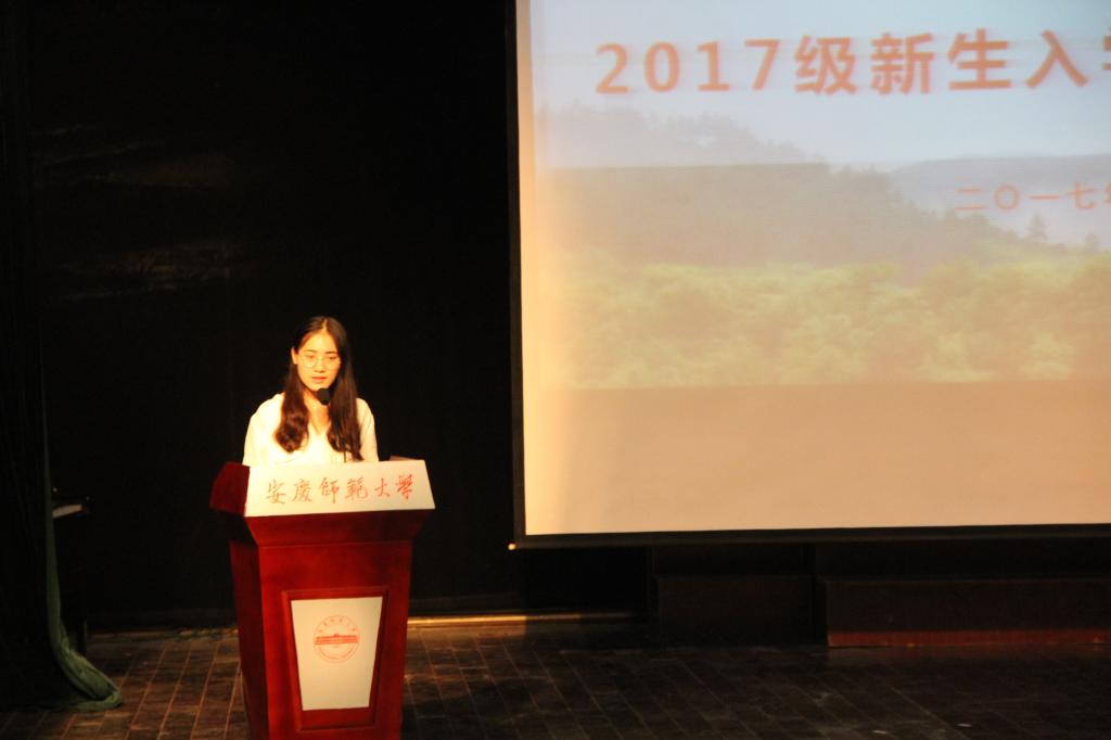 2014级化学二班的胡慧洁同学代表老生发言,介绍了自己的成长经历,并鼓励新同学们要谨记家长的期望和老师的教诲,努力学习,提升素质,用实际行动谱写自己的精彩人生。新生代表杨舒婷同学在发言中表示,会充满青春朝气,不断提升自己;珍惜大学时光,为自己的梦想努力奋斗。