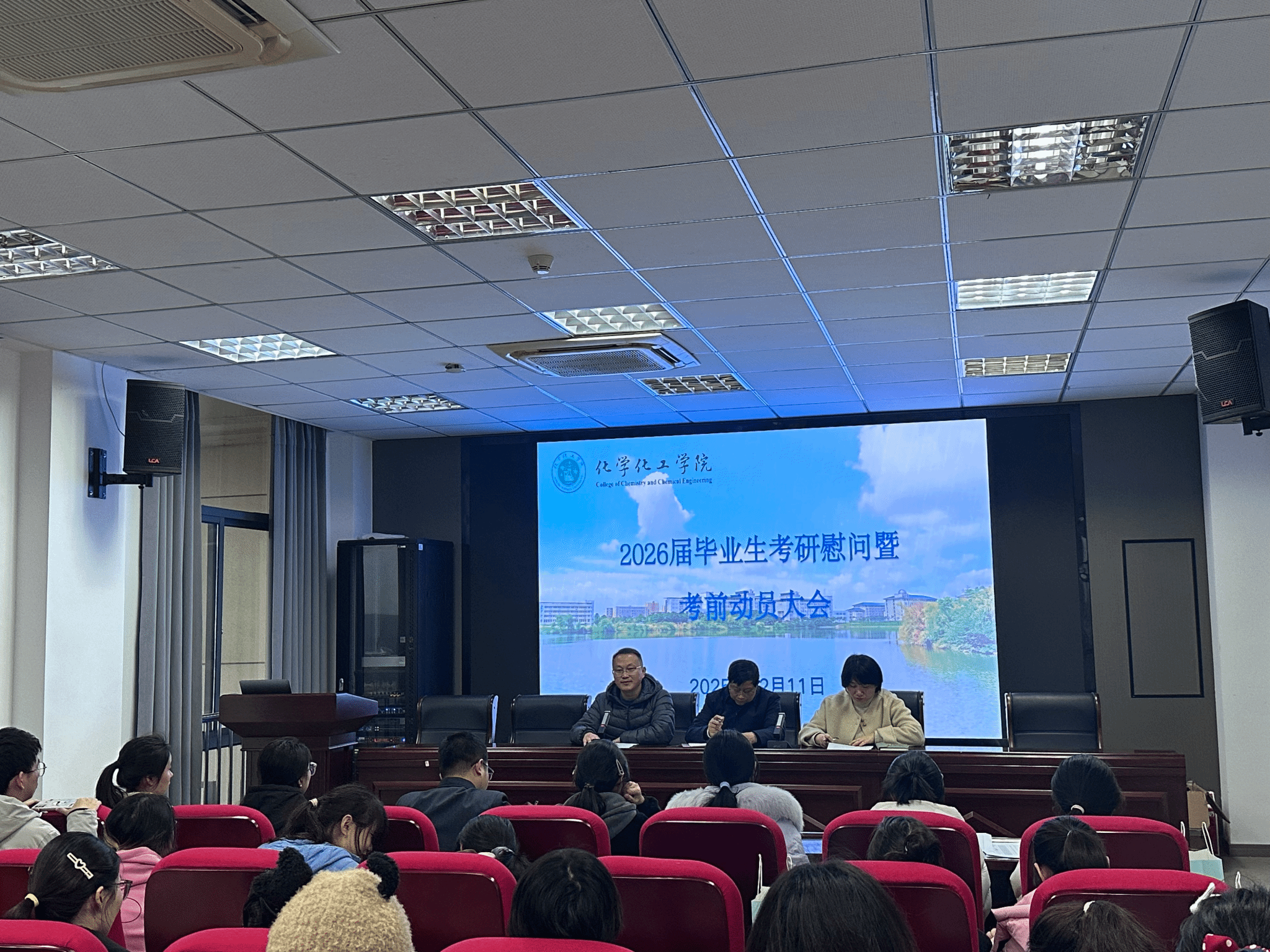 在H401召开2026届考研学子慰问暨考前动员会,学院党政班子、毕业班辅导员及2026届考研学子代表参会,会议由学院党委副书记、纪委书记鲍青燕主持。