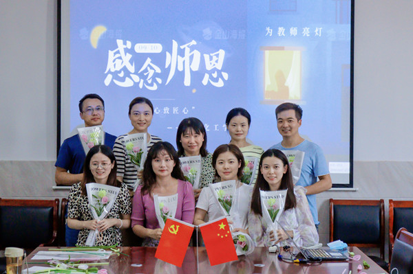 部分师生在化学楼304会议室折叠手工花,献礼教师节。