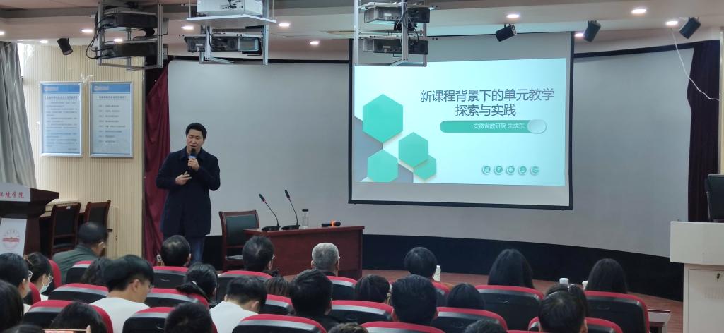 邀请安徽省化学教研员朱成东老师作主题为“新课程背景下单元教学探索与实践”的讲座。化学教法教研组全体教师、2020级化学专业全体学生以及学科教学(化学)的研究生参加了此次讲座,讲座由夏宏宇教授主持。