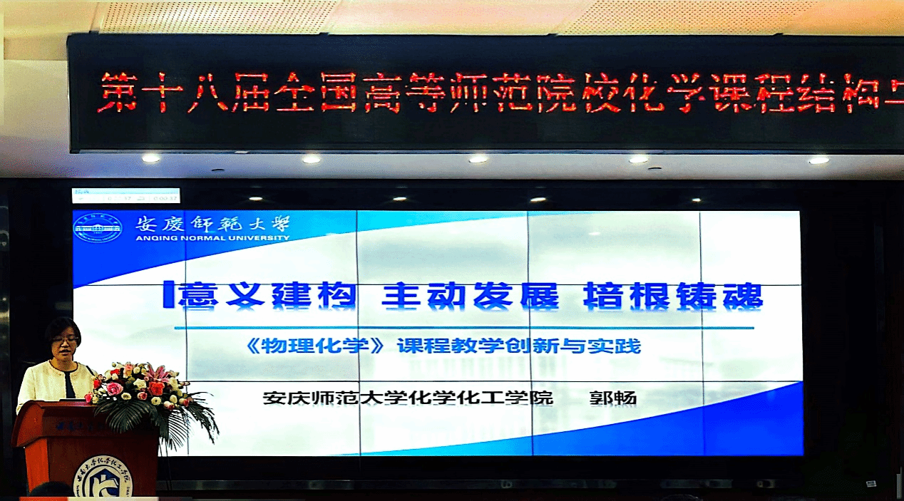 本届会议主题为“深化课程教学改革、提升学生能力素质”,围绕“化学拔尖创新人才培养的改革实践”“化学(师范)专业课程教学改革与实践”“化学类课程思政教学的设计与实践”“化学一流专业、一流课程的建设实践”等开展深入研讨交流。学院郭畅教授作为地方师范大学代表,作了题为“意义建构、主动发展、培根铸魂——《物理化学》课程教学创新与实践”的主题报告,得到了与会代表的关注和肯定。会后,学院《物理化学》课程加入了国家级平台“师范院校物理化学课程虚拟教研室”,提升了课程影响力。