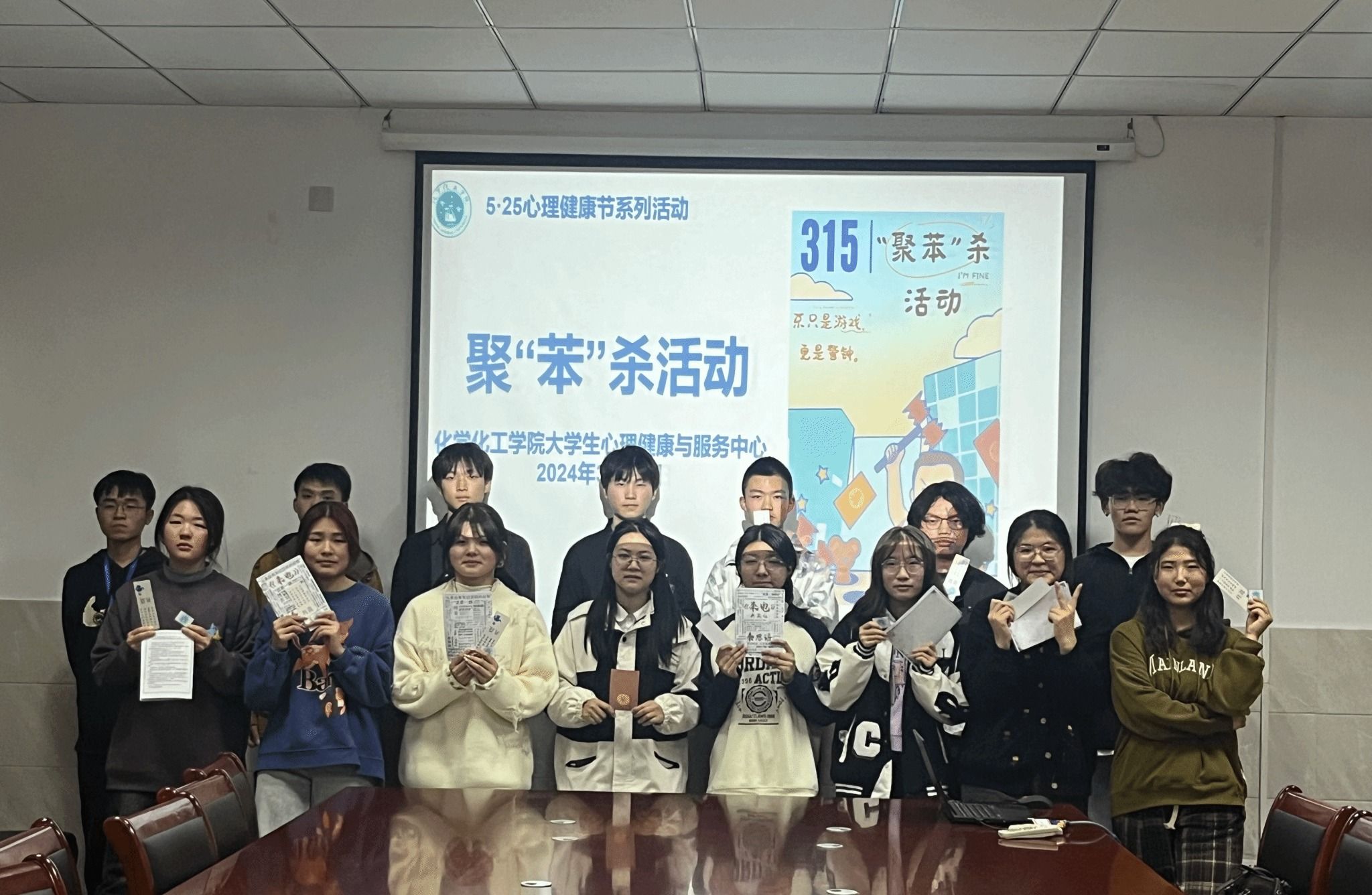大学生心理健康与服务中心开展聚“苯”杀活动,通过沉浸式体验的方式,让学生在游戏中释放压力,学习反诈知识,增强自我保护能力。
