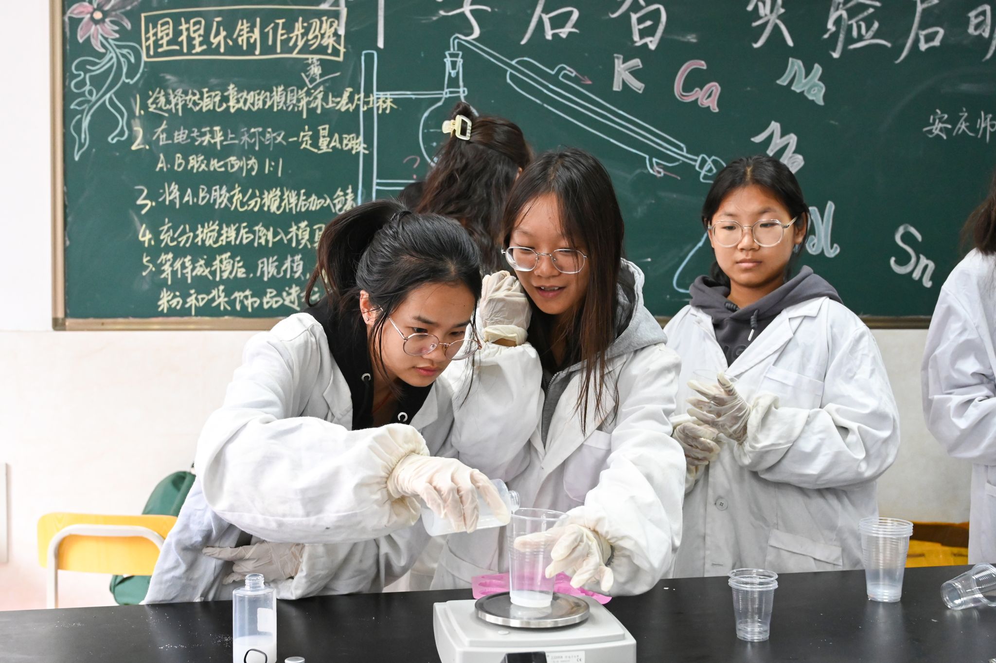 称取AB胶、加入色素、充分搅拌……实验步骤被条理清晰地罗列在黑板上。“A胶与B胶的克重必须保持一致。”活动正式开始前,化学工程与工艺专业2023(2)班的廖芸颉作为讲解员,向参加此次活动的学生们详细介绍了制作捏捏乐所需的材料及注意事项。小老师们在实验室的各个角落穿梭,随时为需要帮助的学生提供指导。“看到他们从起初的迷茫无措到掌握技巧后的自信从容,我觉得自己的付出是有意义的。”廖芸颉坦言。
